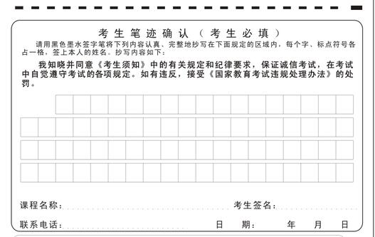 3、答题卡“考试笔迹确认”部分务必完整准确填写,否则此次考试将按“零分”处理,请同学们一定高度重视。